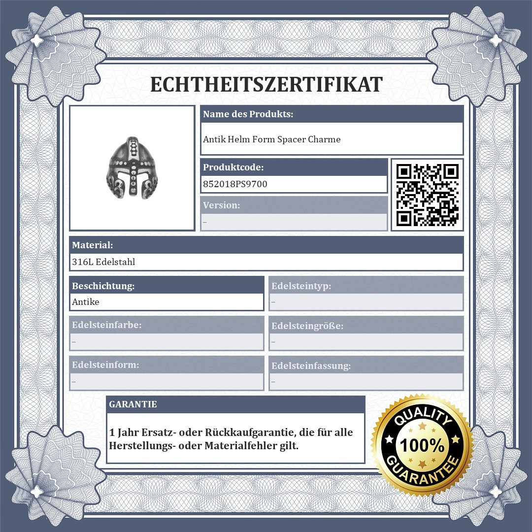 Helmförmiger Spacer Charme. Die Oberfläche des aus medizinischem 316L-Edelstahl gefertigten Zubehör hat einen speziellen Antik-Effekt. Hohe Qualität, wird nicht verschleißen oder anlaufen mit der Verwendung. Spacer sorgen dafür, dass Charmes und Perlen nicht von Ihrem Armband abrutschen.
