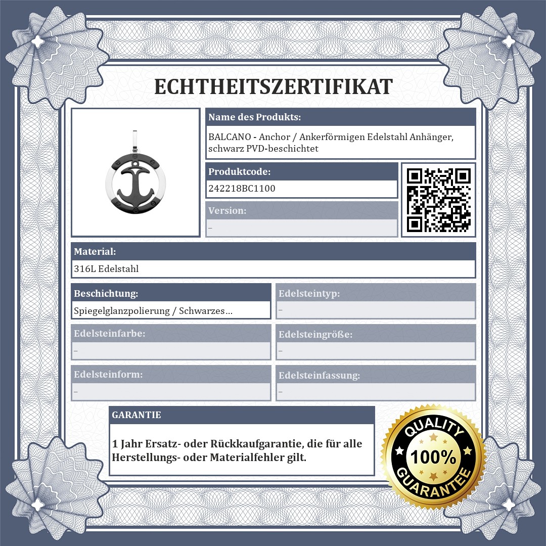 BALCANO - Anchor / Ankerförmigen Edelstahl Anhänger, schwarz PVD-beschichtet