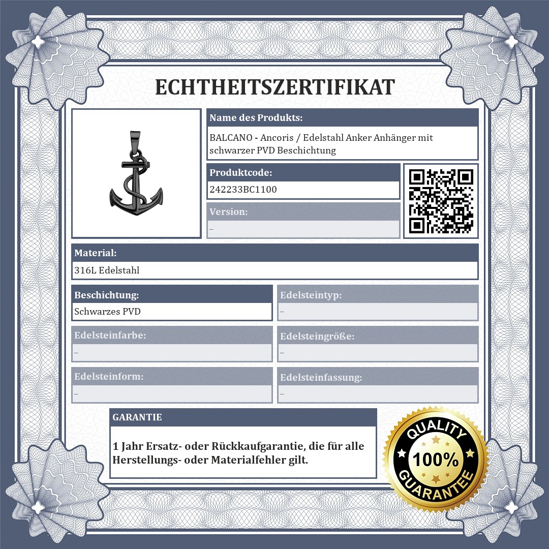 BALCANO - Ancoris / Edelstahl Anker Anhänger mit schwarzer PVD Beschichtung