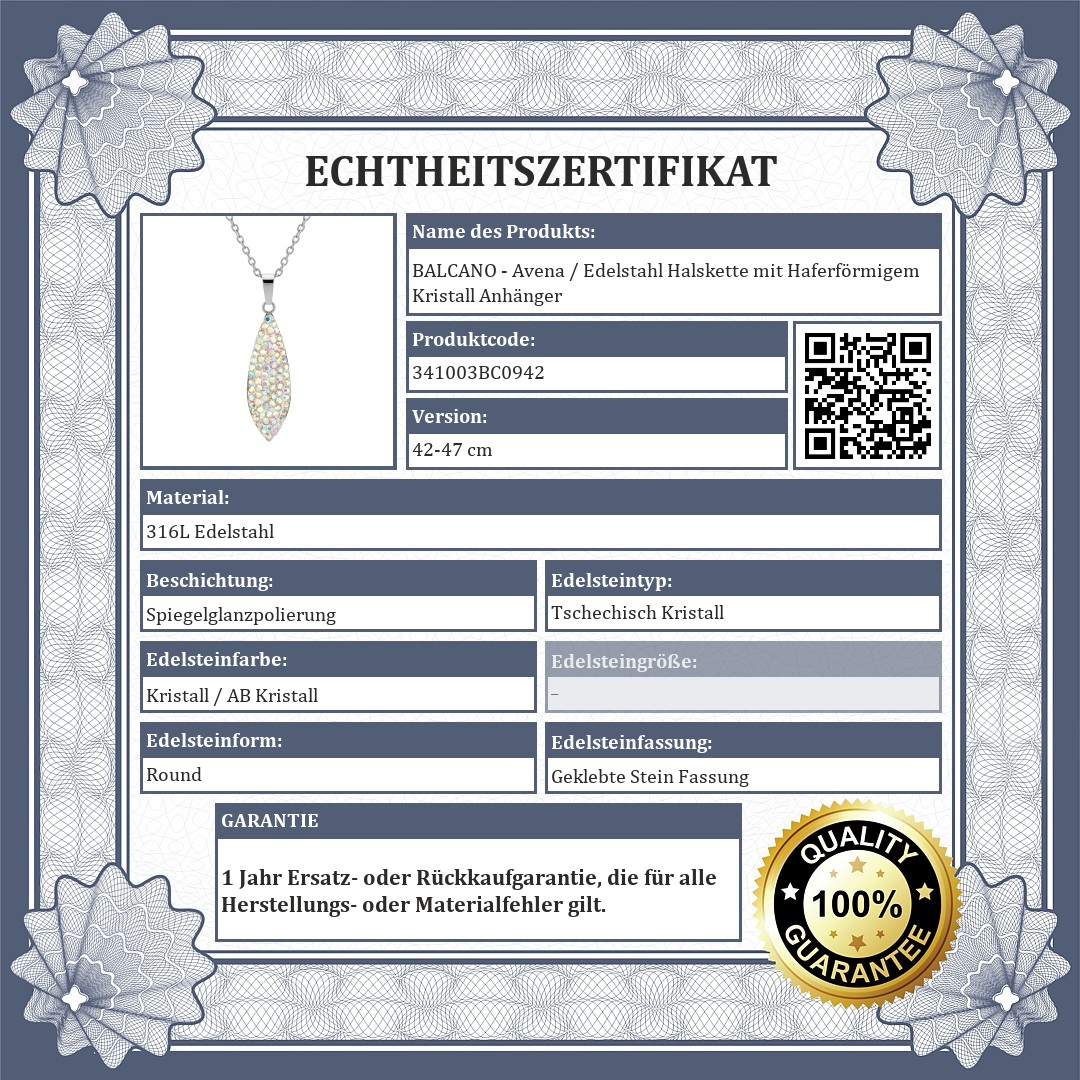 BALCANO - Avena / Edelstahl Halskette mit Haferförmigem Kristall Anhänger