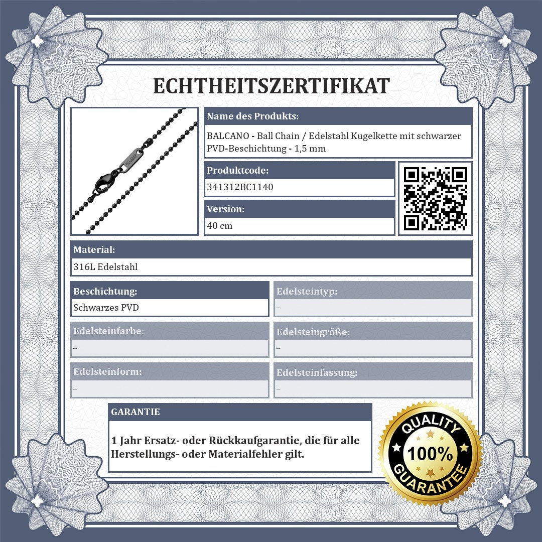 BALCANO - Ball Chain / Edelstahl Kugelkette mit schwarzer PVD-Beschichtung - 1,5 mm