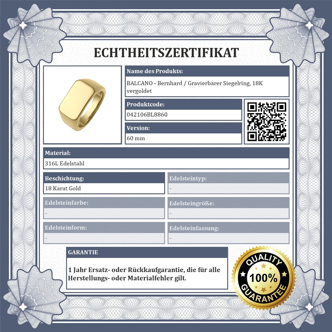 BALCANO - Bernhard / Gravierbarer Siegelring, 18K vergoldet