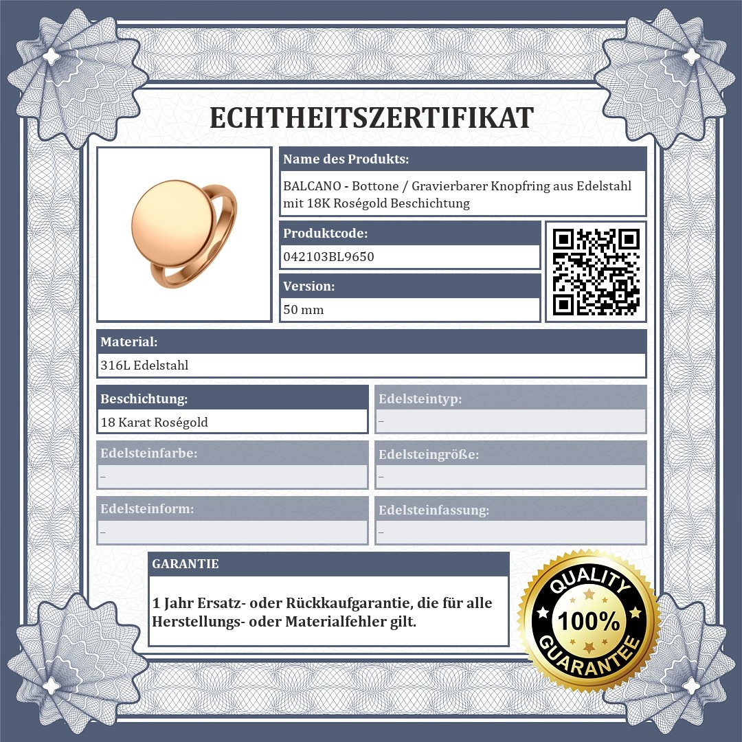 BALCANO - Bottone / Gravierbarer Knopfring aus Edelstahl mit 18K Roségold Beschichtung
