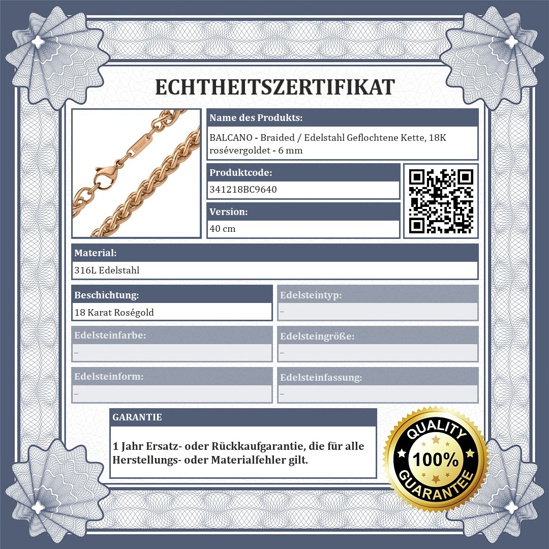BALCANO - Braided / Edelstahl Geflochtene Kette, 18K rosévergoldet - 6 mm