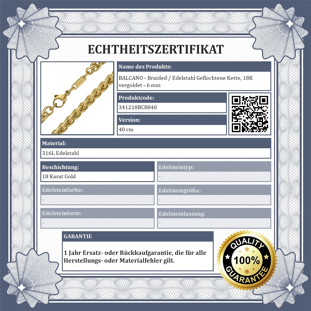 BALCANO - Braided / Edelstahl Geflochtene Kette, 18K vergoldet - 6 mm