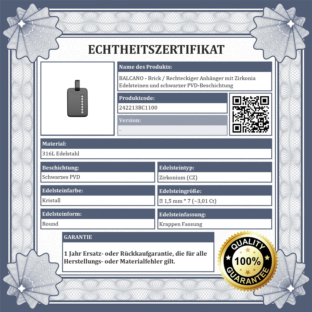 BALCANO - Brick / Rechteckiger Anhänger mit Zirkonia Edelsteinen und schwarzer PVD-Beschichtung