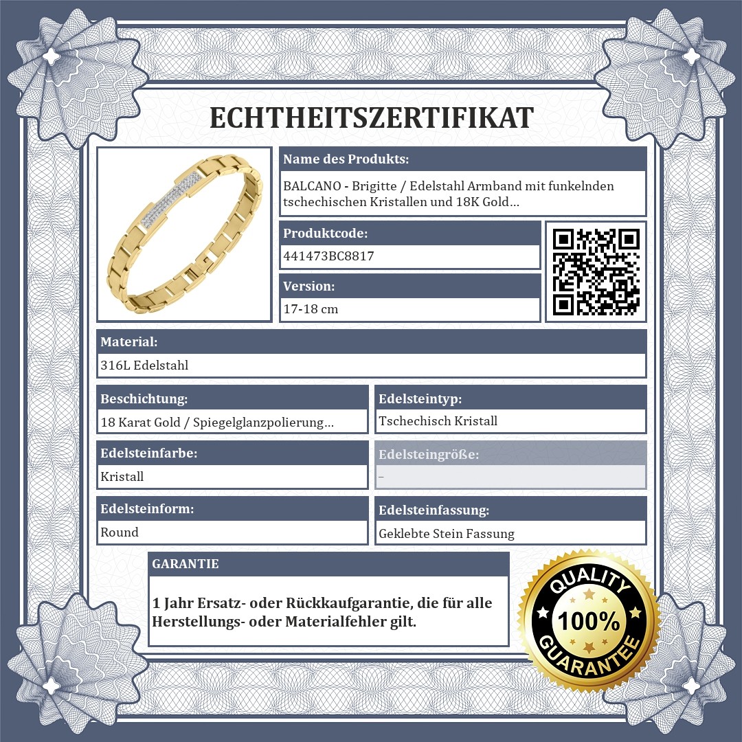 BALCANO - Brigitte / Edelstahl Armband mit funkelnden tschechischen Kristallen und 18K Gold Beschichtung