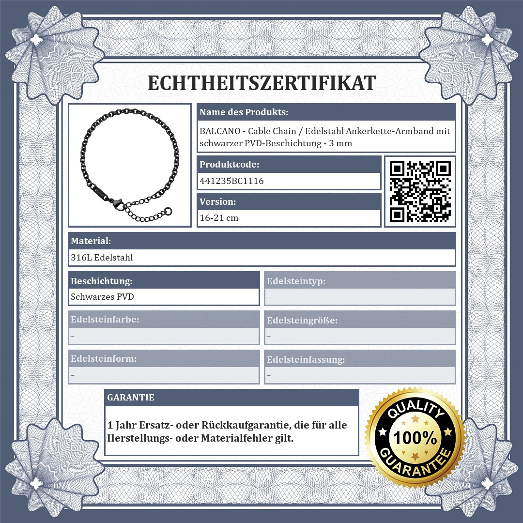 BALCANO - Cable Chain / Edelstahl Ankerkette-Armband mit schwarzer PVD-Beschichtung - 3 mm