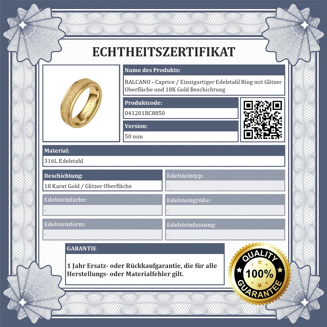 BALCANO - Caprice / Einzigartiger Edelstahl Ring mit Glitzer Oberfläche und 18K Gold Beschichtung