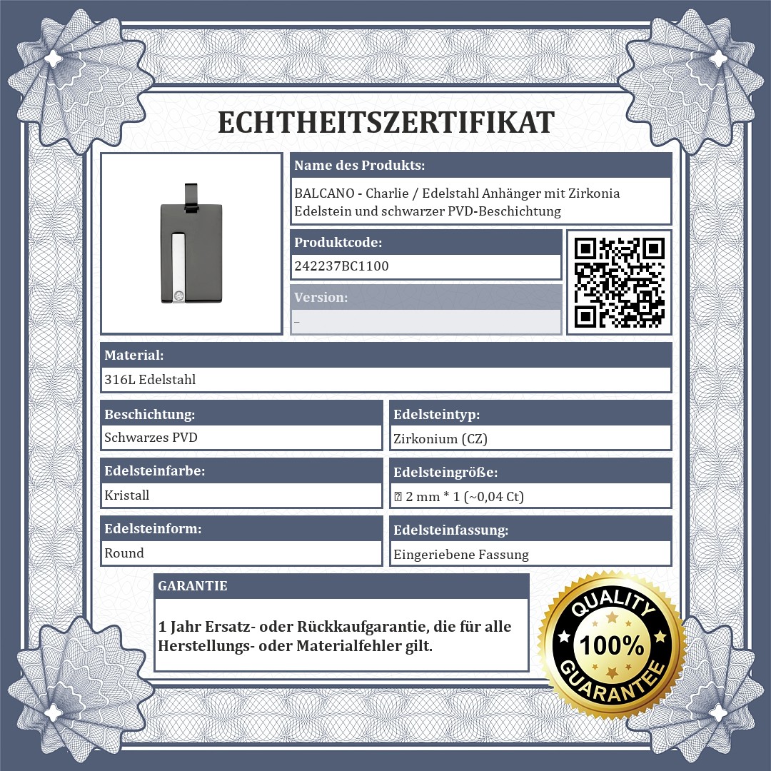 BALCANO - Charlie / Edelstahl Anhänger mit Zirkonia Edelstein und schwarzer PVD-Beschichtung