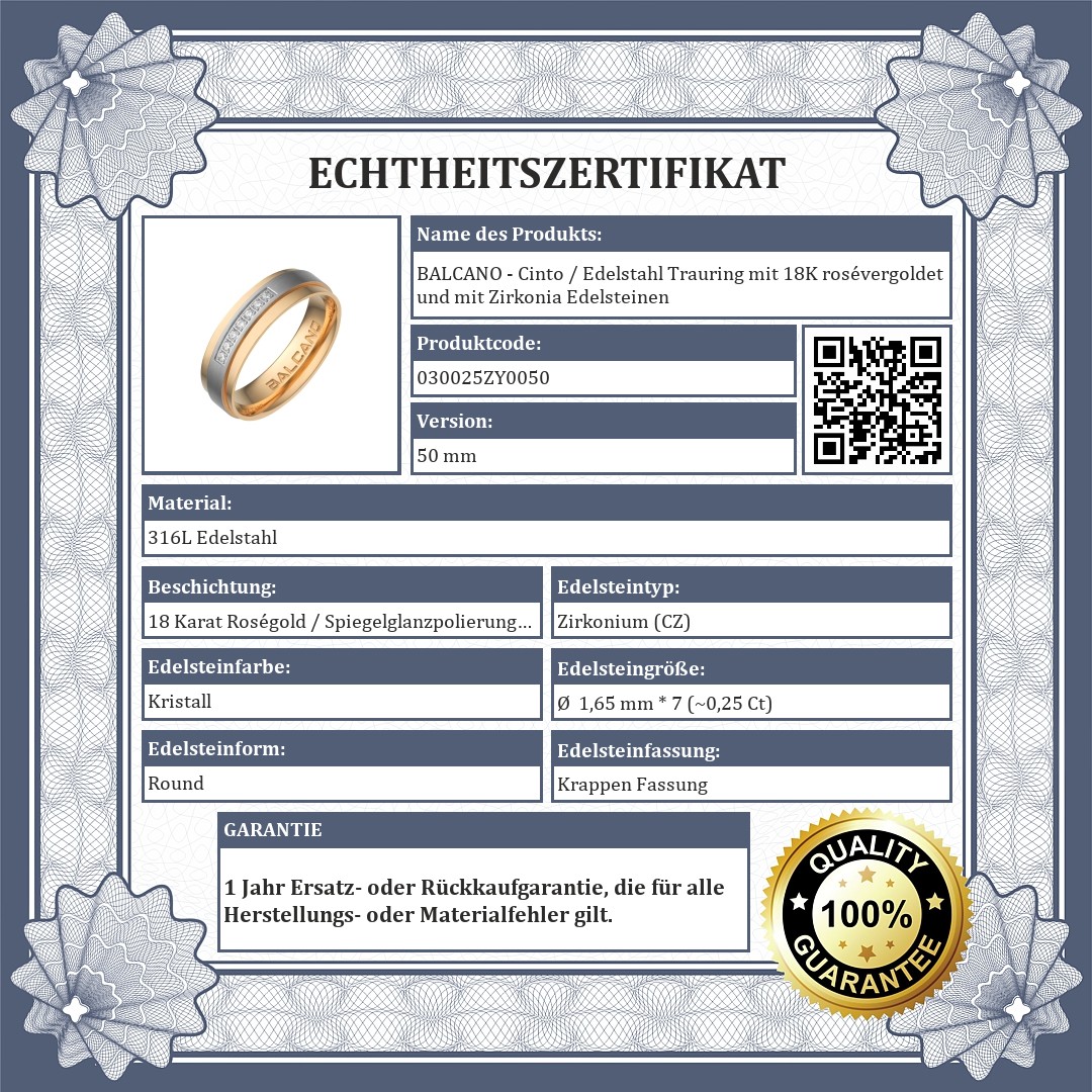 BALCANO - Cinto / Edelstahl Trauring mit 18K rosévergoldet und mit Zirkonia Edelsteinen
