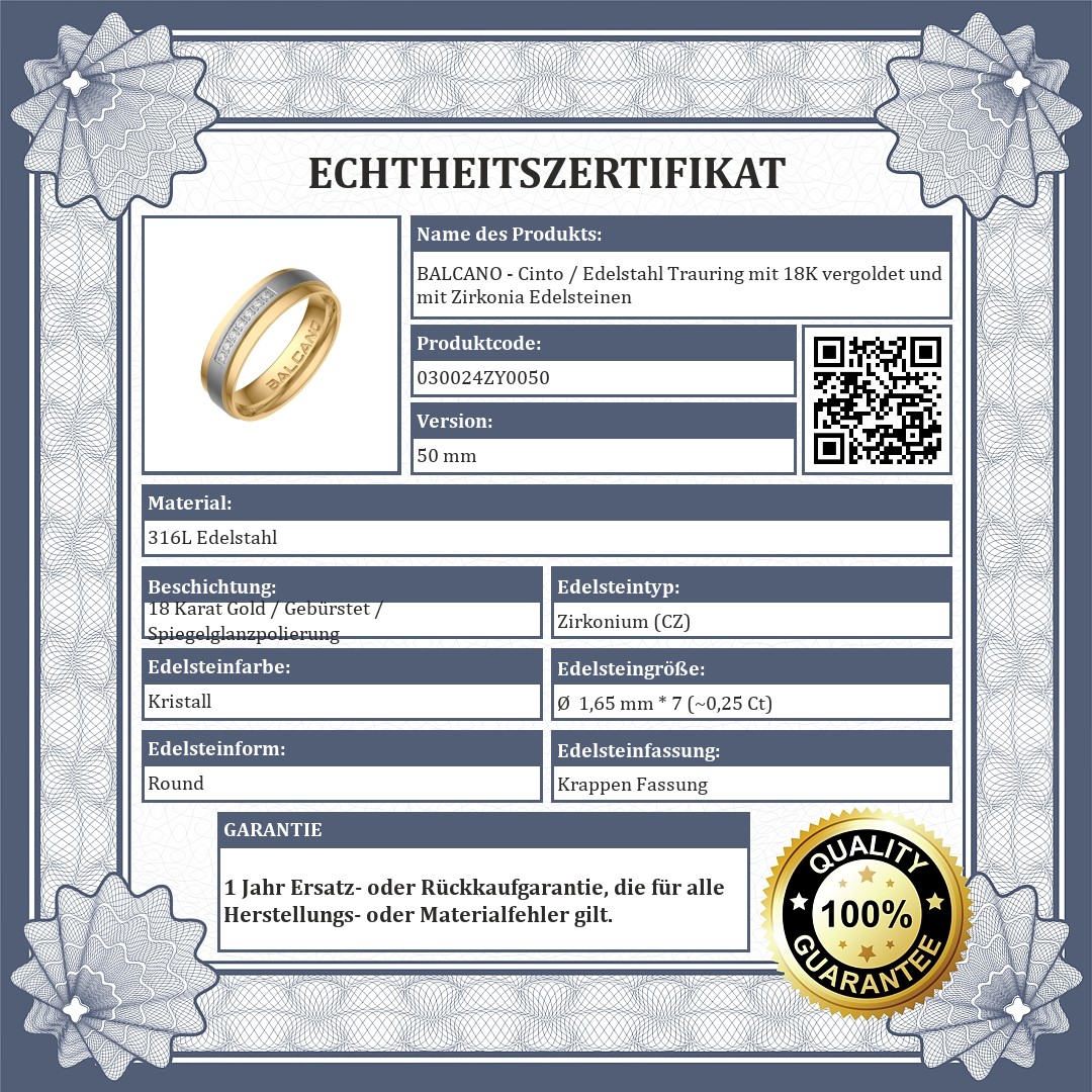 BALCANO - Cinto / Edelstahl Trauring mit 18K vergoldet und mit Zirkonia Edelsteinen
