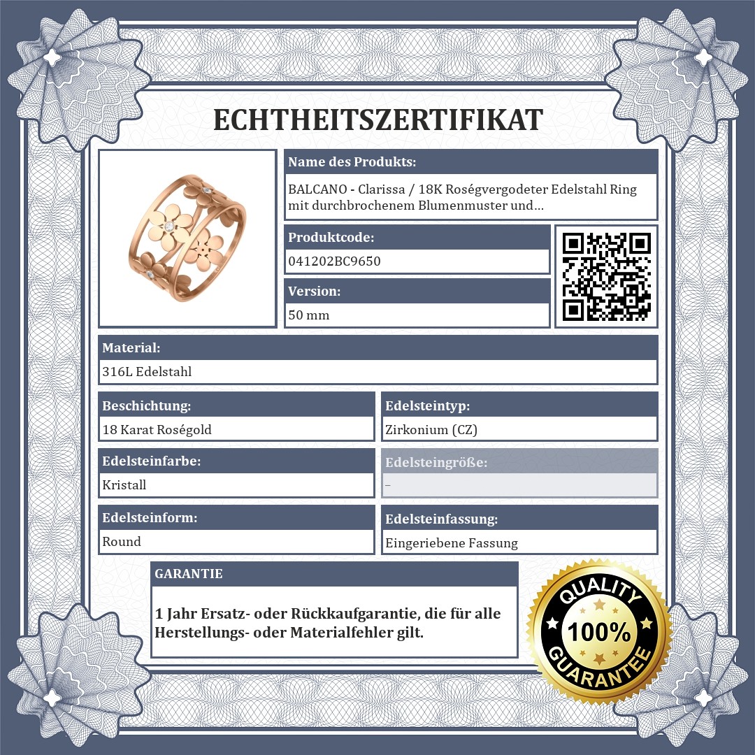 BALCANO - Clarissa / 18K Roségvergodeter Edelstahl Ring mit durchbrochenem Blumenmuster und Zirkonia Edelsteinen