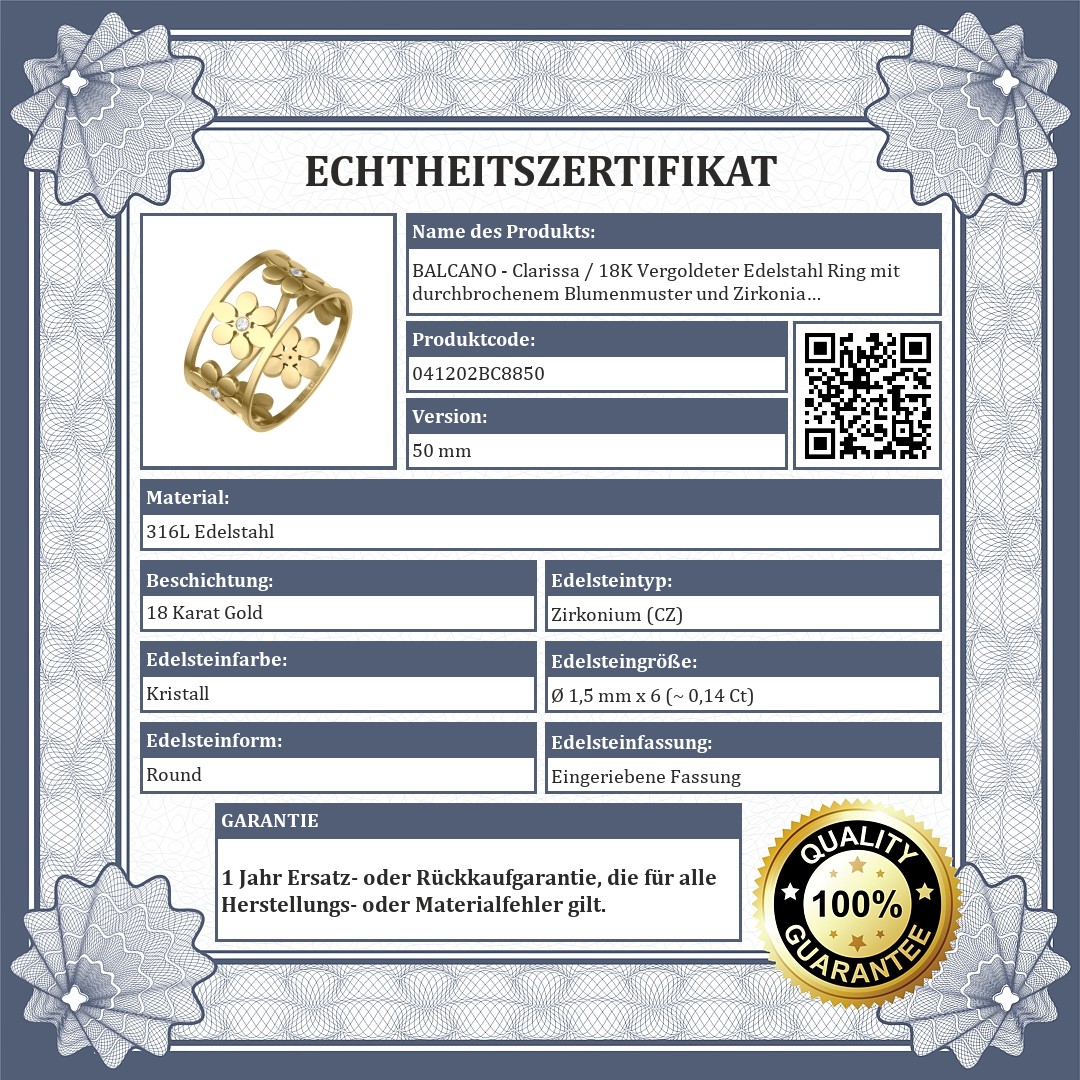 BALCANO - Clarissa / 18K Vergoldeter Edelstahl Ring mit durchbrochenem Blumenmuster und Zirkonia Edelsteinen (041202BC88)