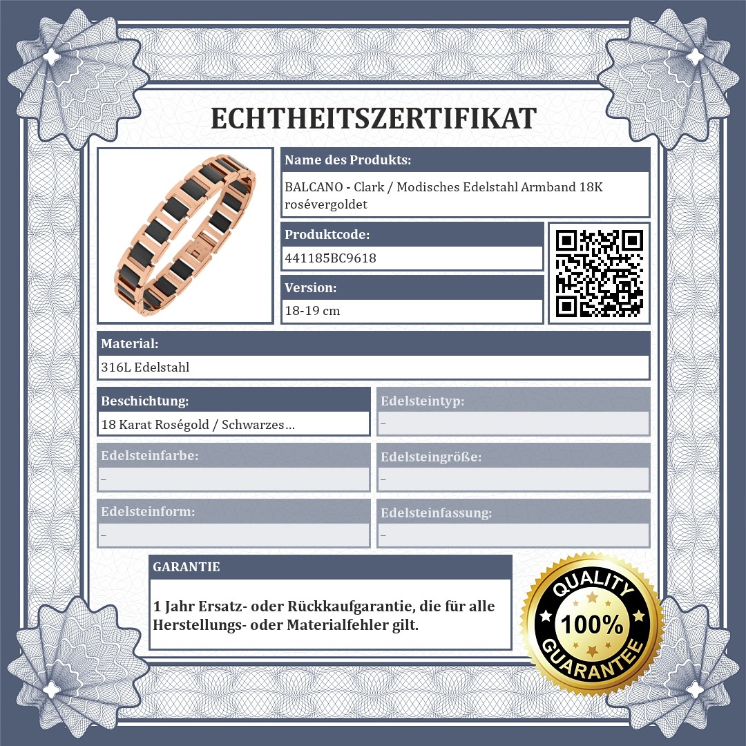 BALCANO - Clark / Modisches Edelstahl Armband 18K rosévergoldet