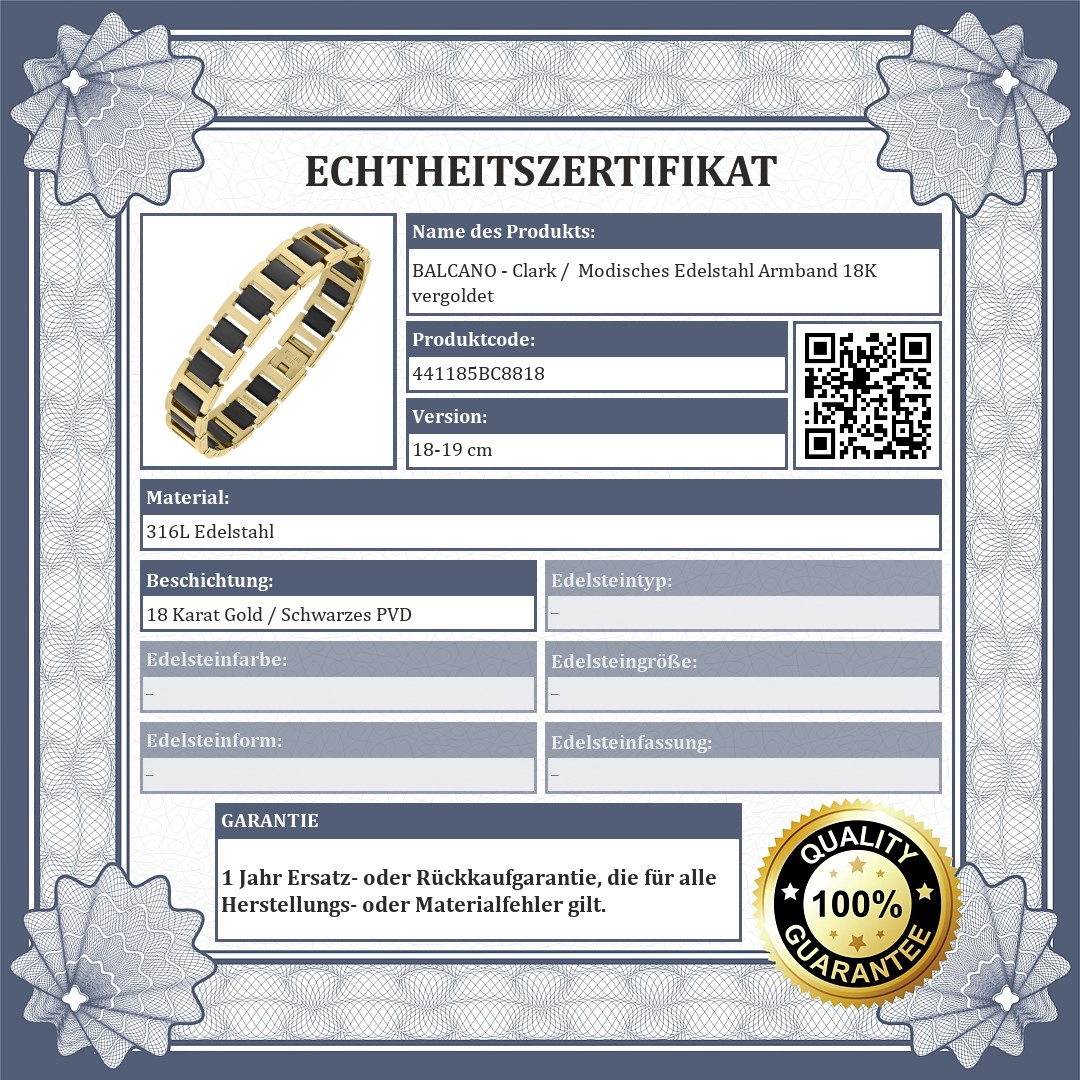 BALCANO - Clark / Modisches Edelstahl Armband 18K vergoldet