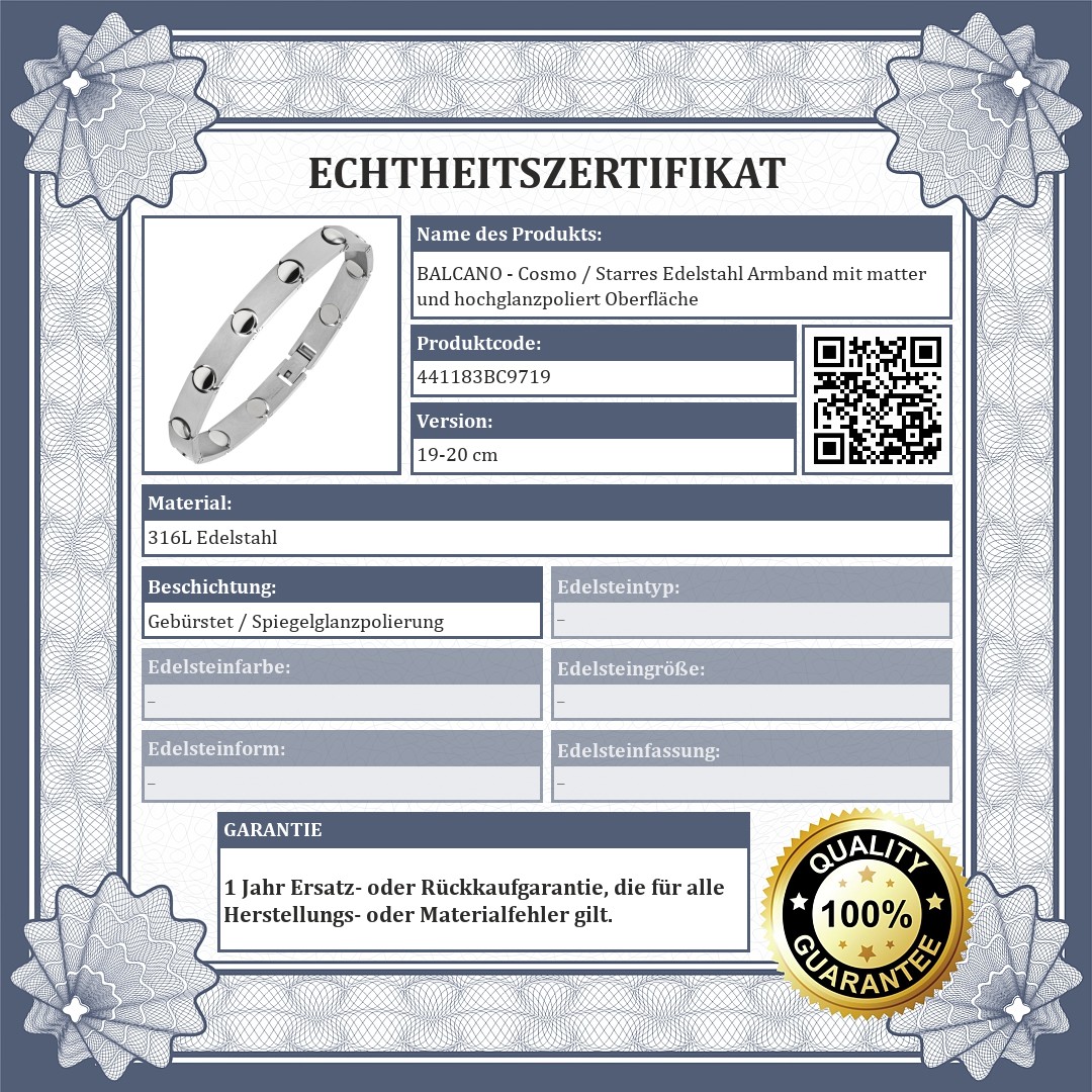 BALCANO - Cosmo / Starres Edelstahl Armband mit matter und hochglanzpoliert Oberfläche