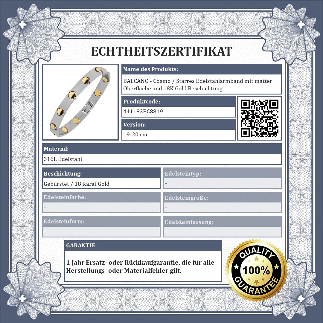 BALCANO - Cosmo / Starres Edelstahlarmband mit matter Oberfläche und 18K Gold Beschichtung