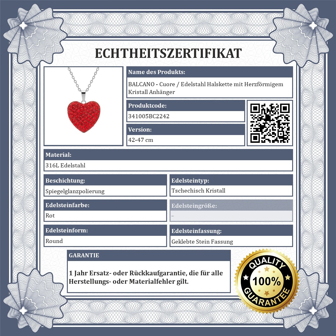 BALCANO - Cuore / Edelstahl Halskette mit Herzförmigem Kristall Anhänger
