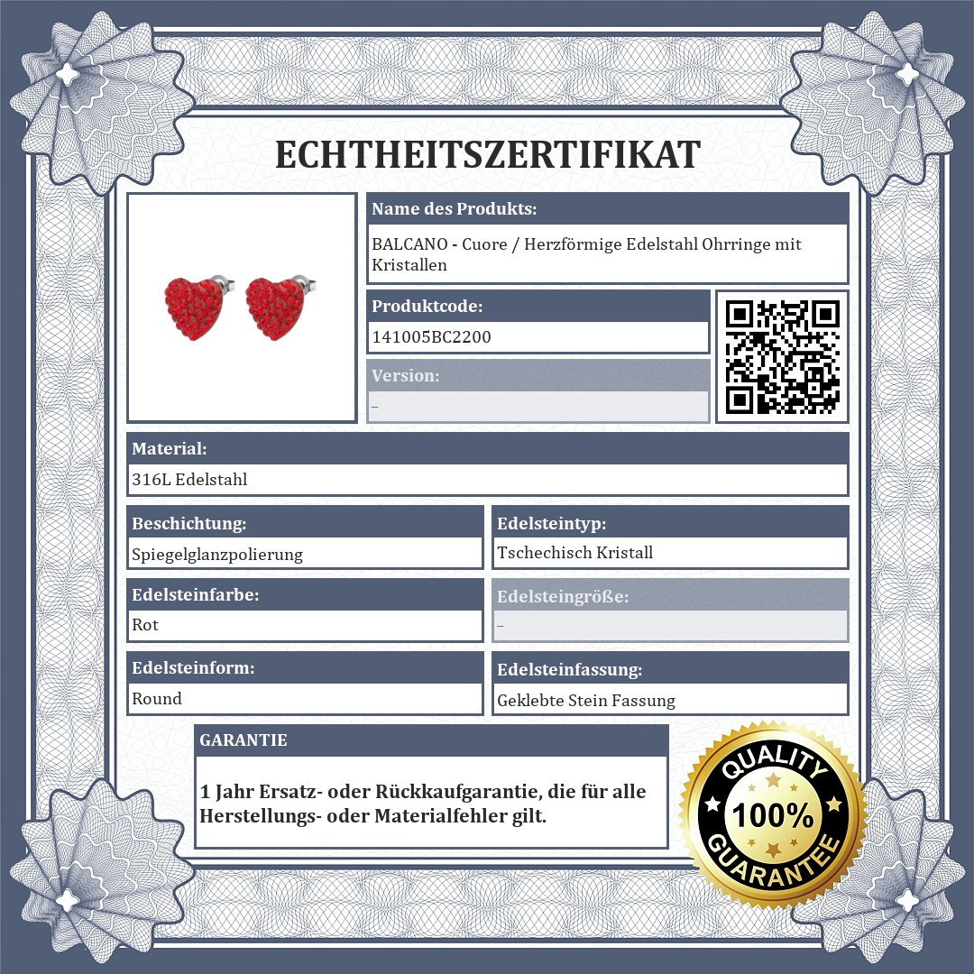 BALCANO - Cuore / Herzförmige Edelstahl Ohrringe mit Kristallen