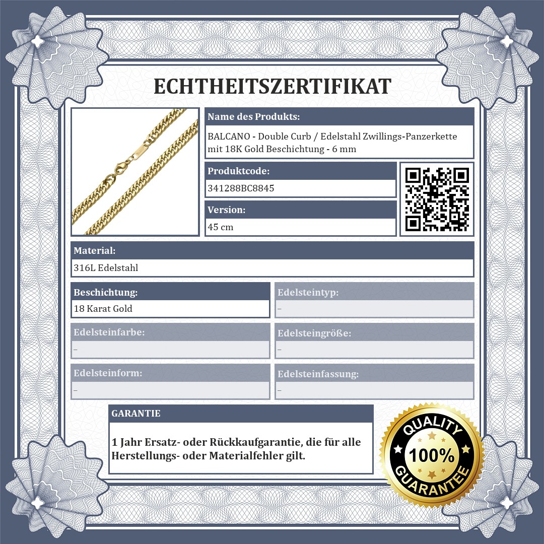 BALCANO - Double Curb / Edelstahl Zwillings-Panzerkette mit 18K Gold Beschichtung - 6 mm