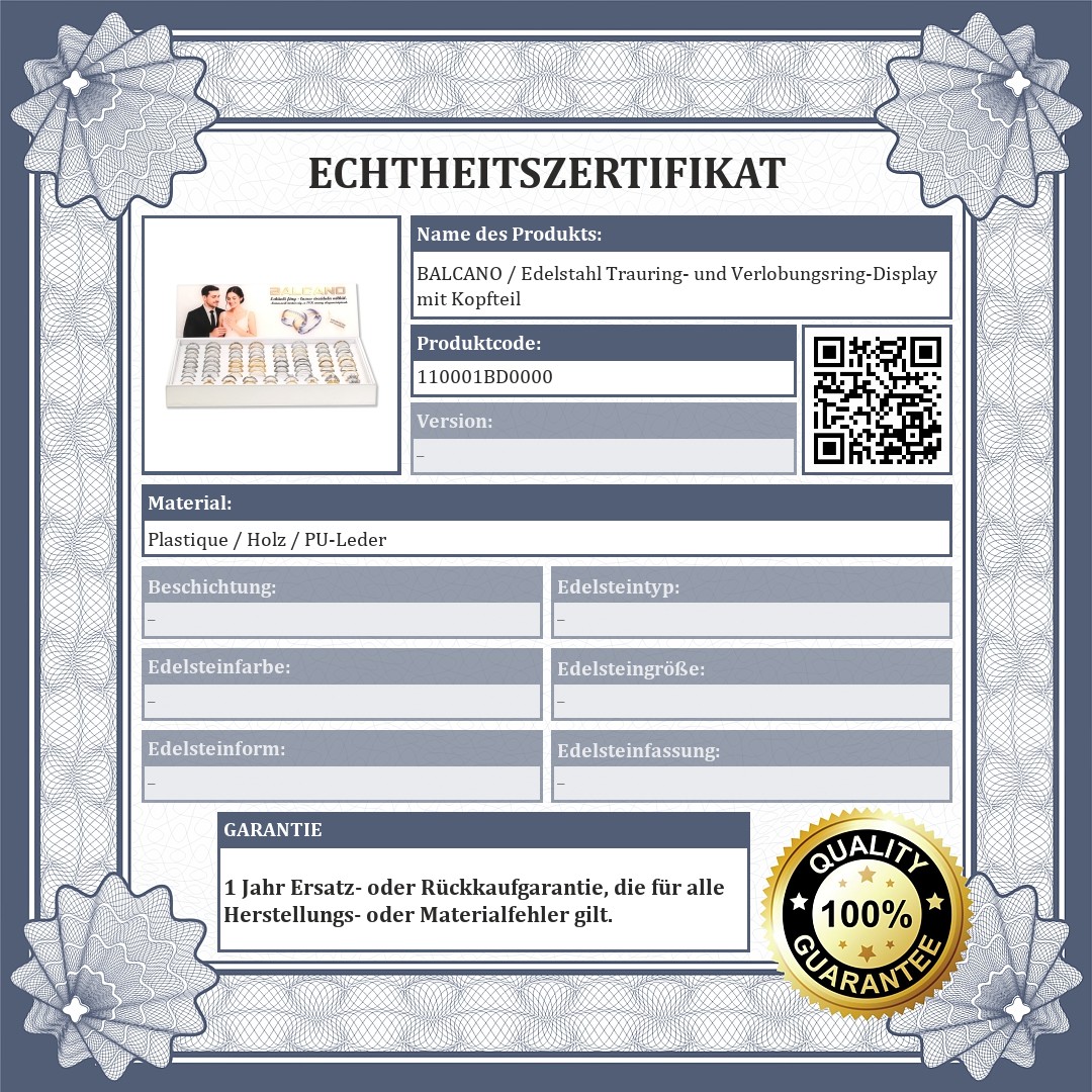 BALCANO / Edelstahl Trauring- und Verlobungsring-Display mit Kopfteil