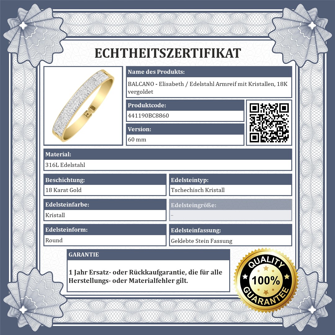 BALCANO - Elisabeth / Edelstahl Armreif mit Kristallen, 18K vergoldet