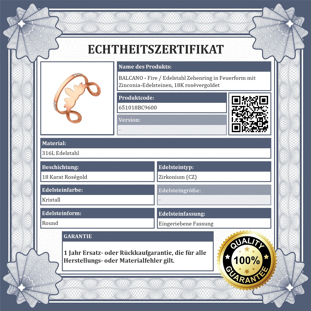 BALCANO - Fire / Edelstahl Zehenring in Feuerform mit Zinconia-Edelsteinen, 18K rosévergoldet