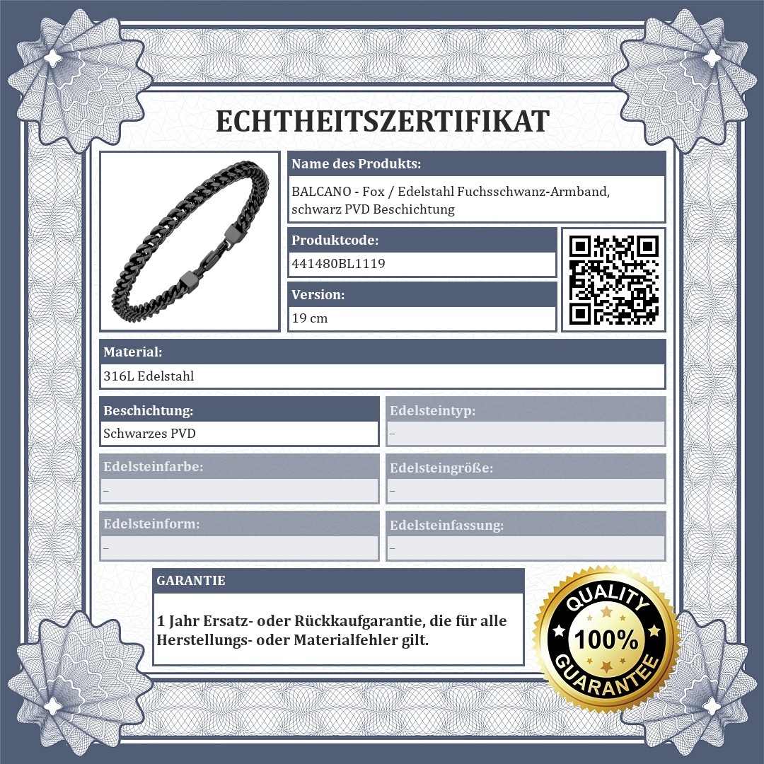 BALCANO - Fox / Edelstahl Fuchsschwanz-Armband, schwarz PVD Beschichtung