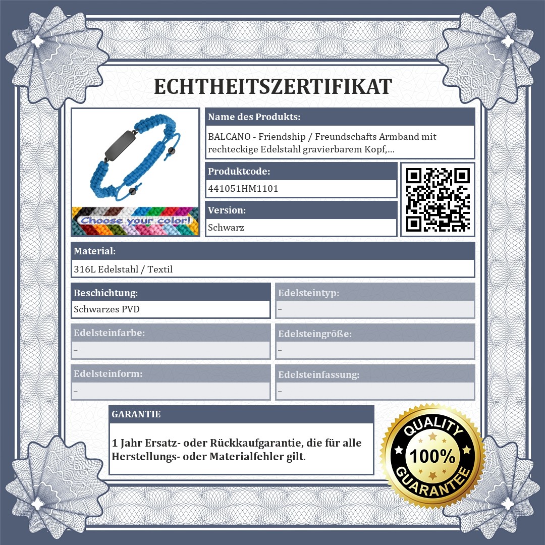 BALCANO - Friendship / Freundschafts Armband mit rechteckige Edelstahl gravierbarem Kopf, schwarzer PVD-Beschichtung