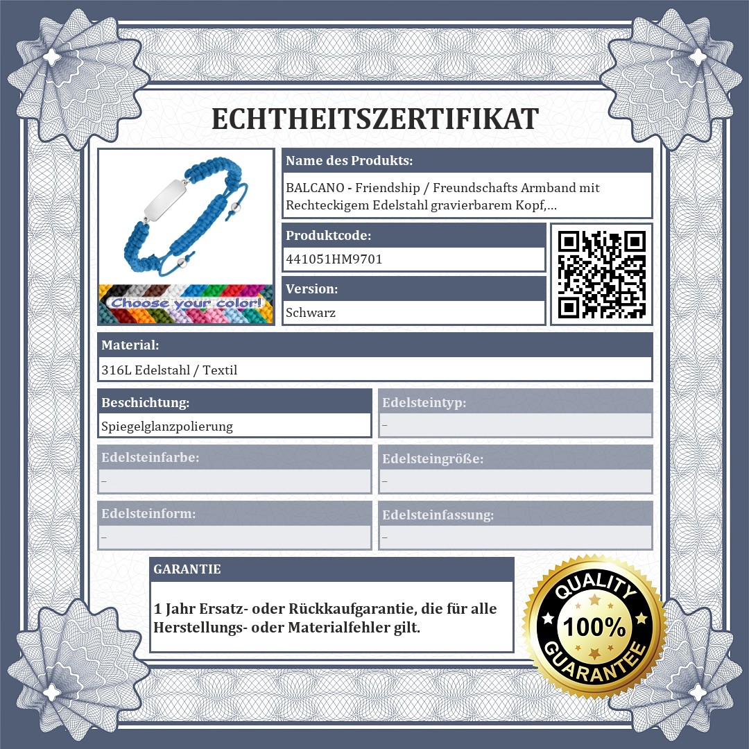 BALCANO - Friendship / Freundschafts Armband mit Rechteckigem Edelstahl gravierbarem Kopf, Hochglanzpolierung