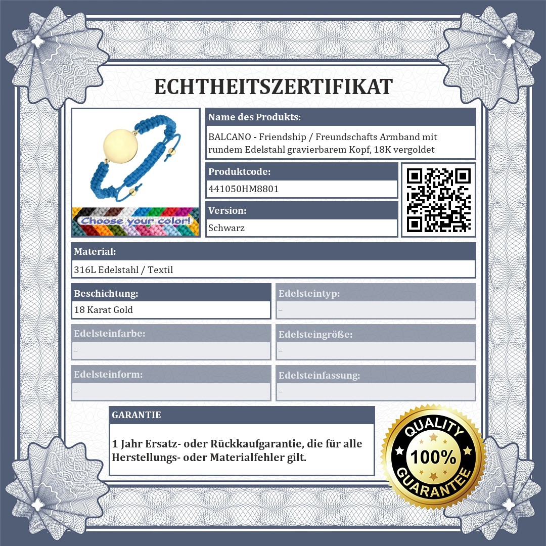 BALCANO - Friendship / Freundschafts Armband mit rundem Edelstahl gravierbarem Kopf, 18K vergoldet