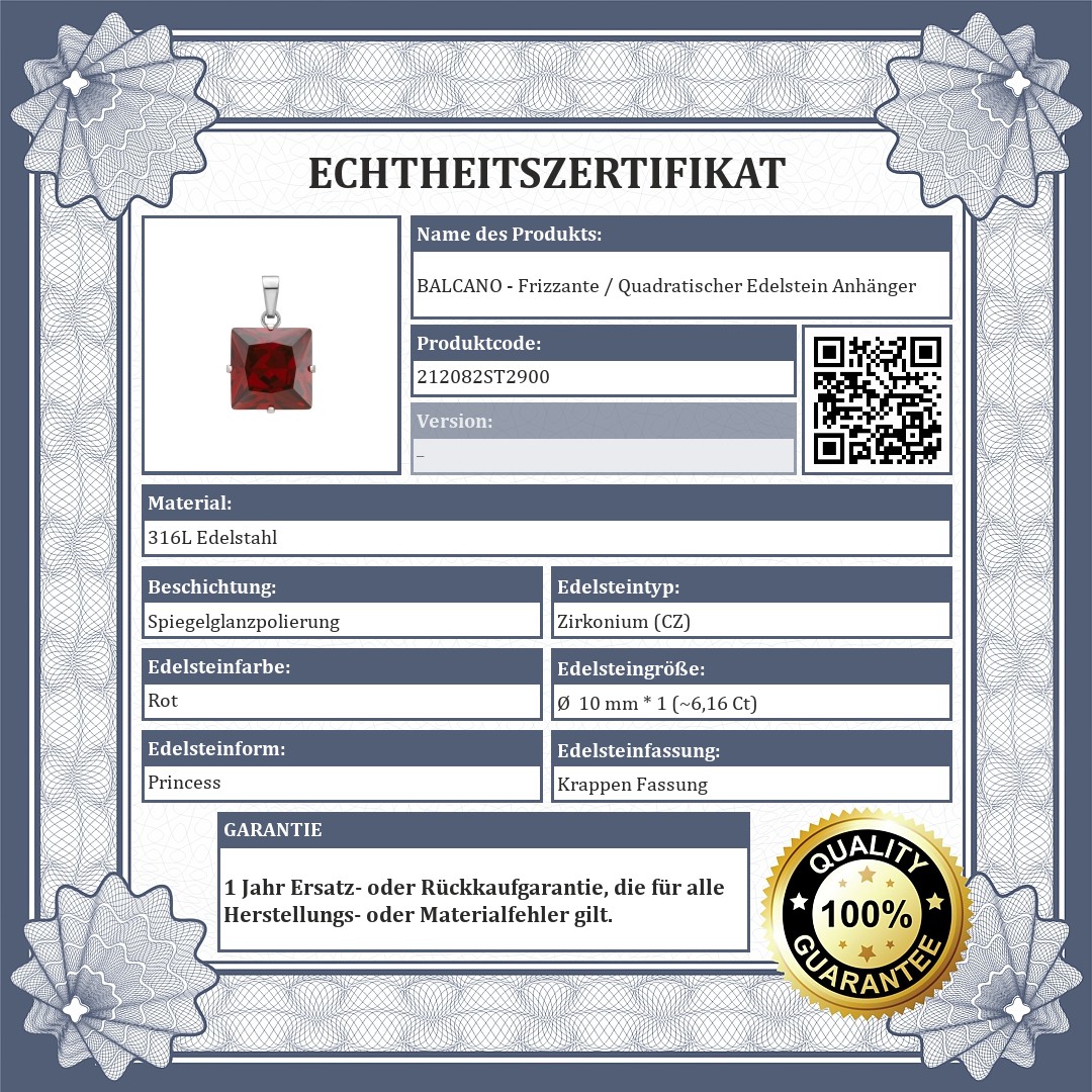 Granatroter Zirkonia Edelstein Anhänger. Schmuck aus medizinischem 316L-Edelstahl, der sich aufgrund seines Materials nicht abnutzt oder verfärbt.