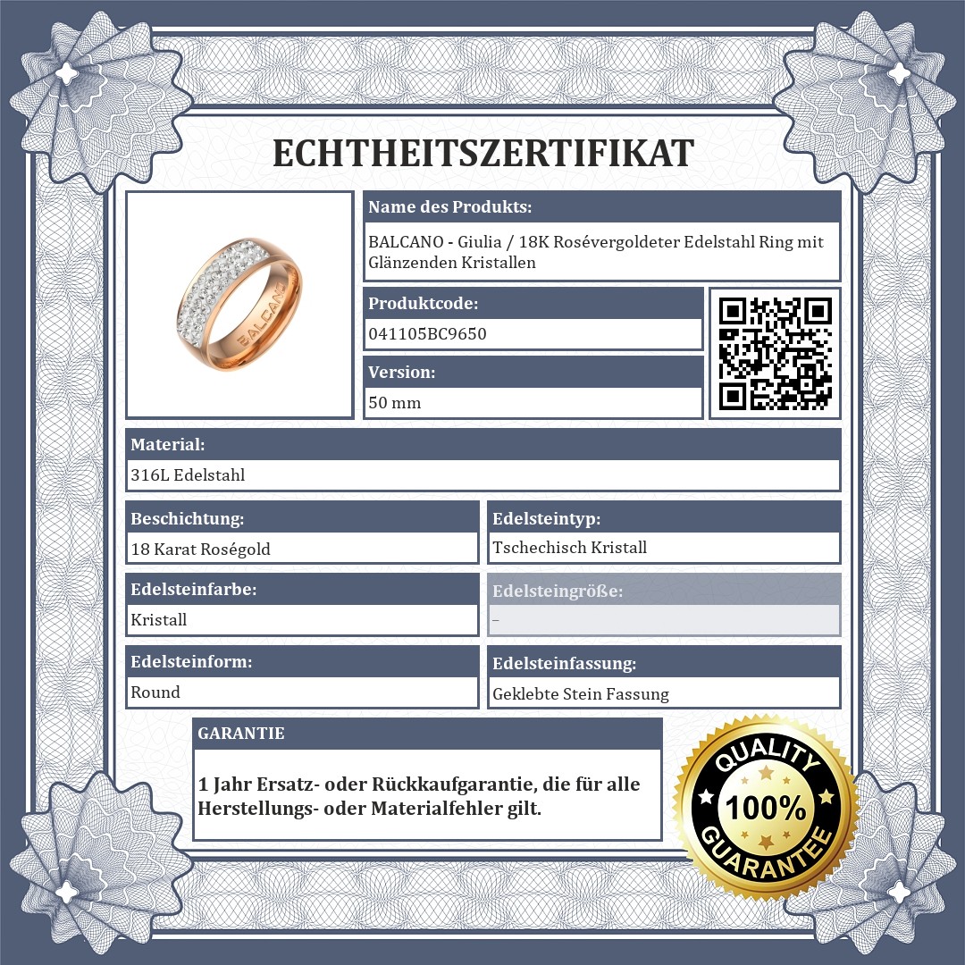BALCANO - Giulia / 18K Rosévergoldeter Edelstahl Ring mit Glänzenden Kristallen