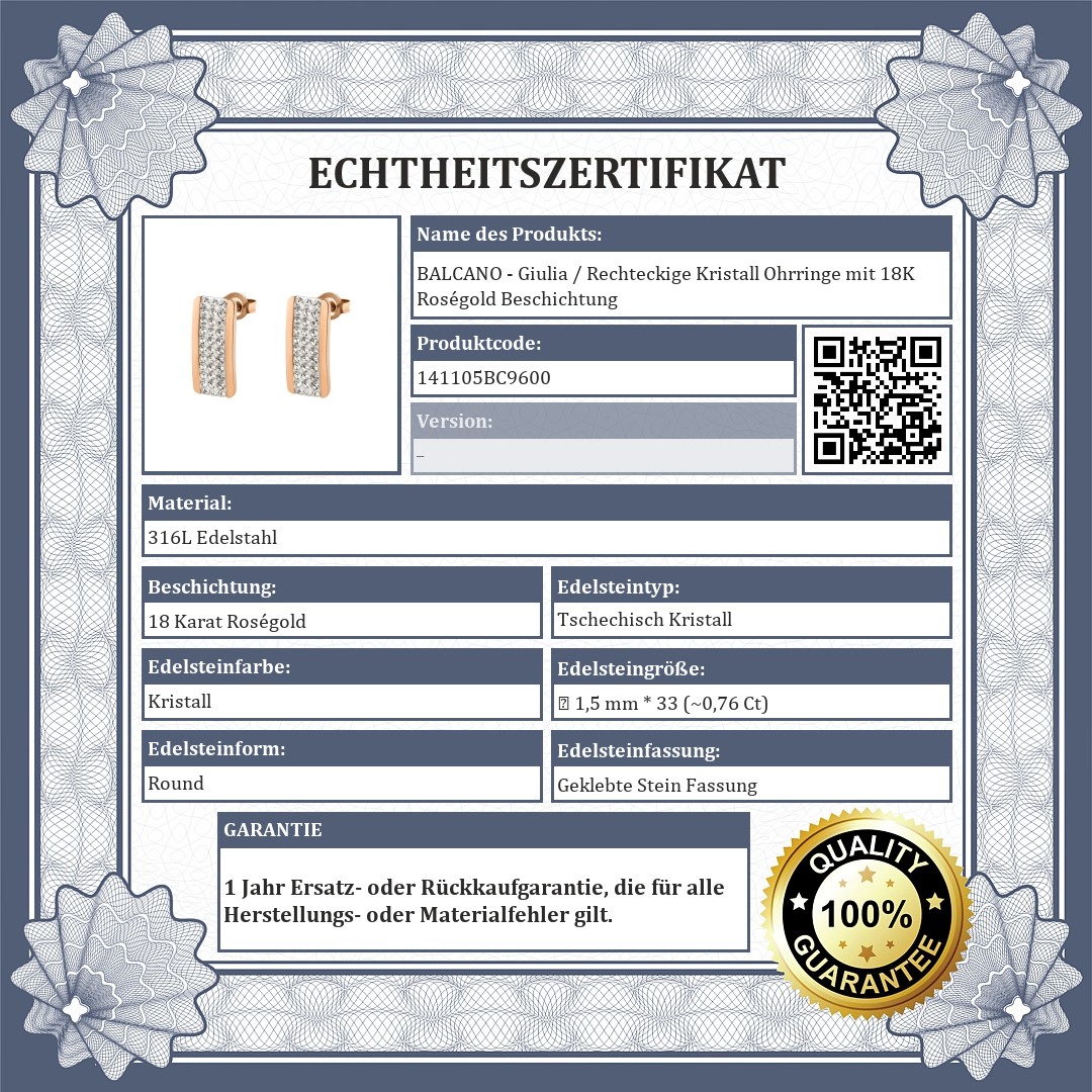 BALCANO - Giulia / Rechteckige Kristall Ohrringe mit 18K Roségold Beschichtung