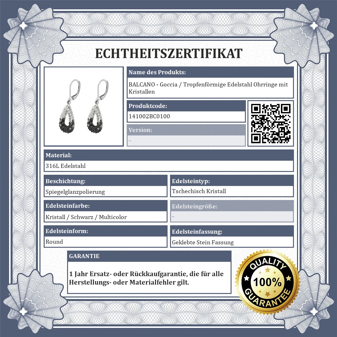 BALCANO - Goccia / Tropfenförmige Edelstahl Ohrringe mit Kristallen