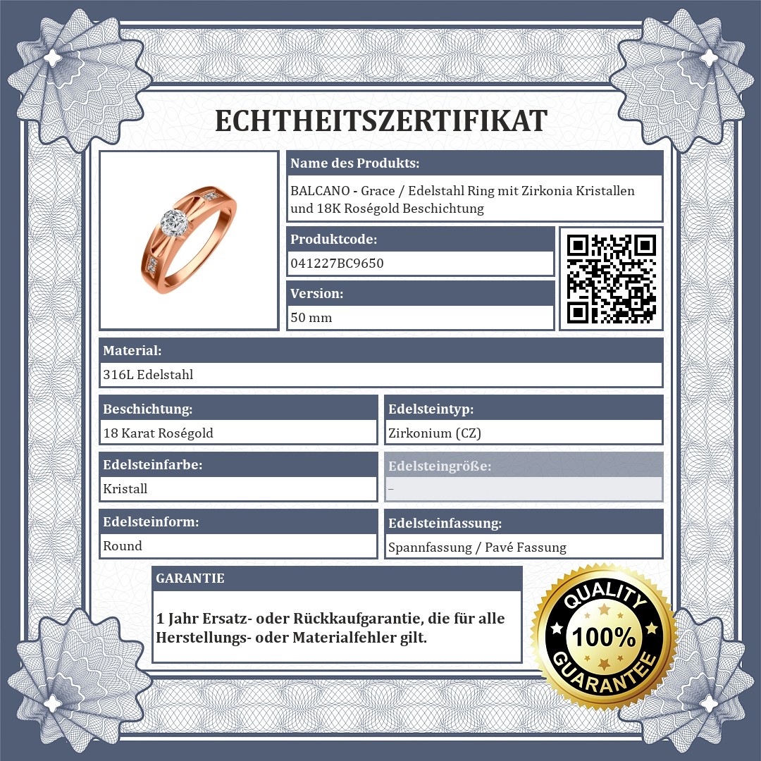 BALCANO - Grace / Edelstahl Ring mit Zirkonia Kristallen und 18K Roségold Beschichtung