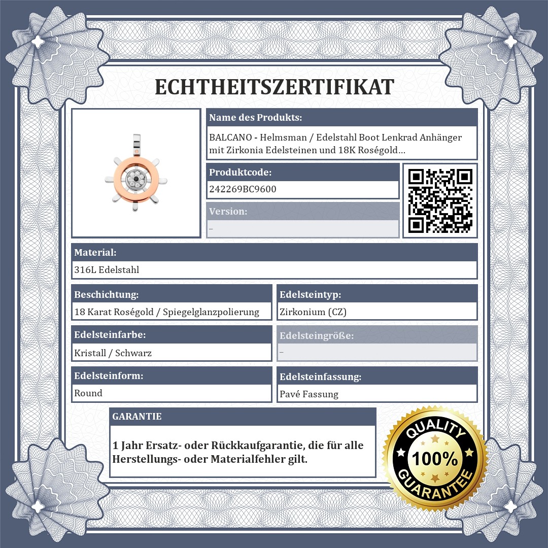 BALCANO - Helmsman / Edelstahl Boot Lenkrad Anhänger mit Zirkonia Edelsteinen und 18K Roségold Beschichtung