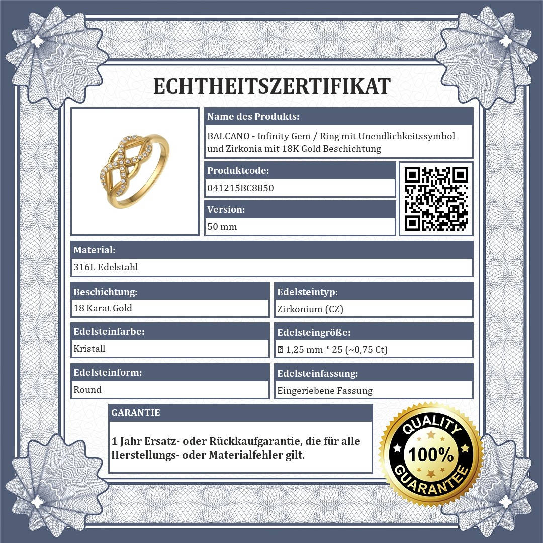 BALCANO - Infinity Gem / Ring mit Unendlichkeitssymbol und Zirkonia mit 18K Gold Beschichtung