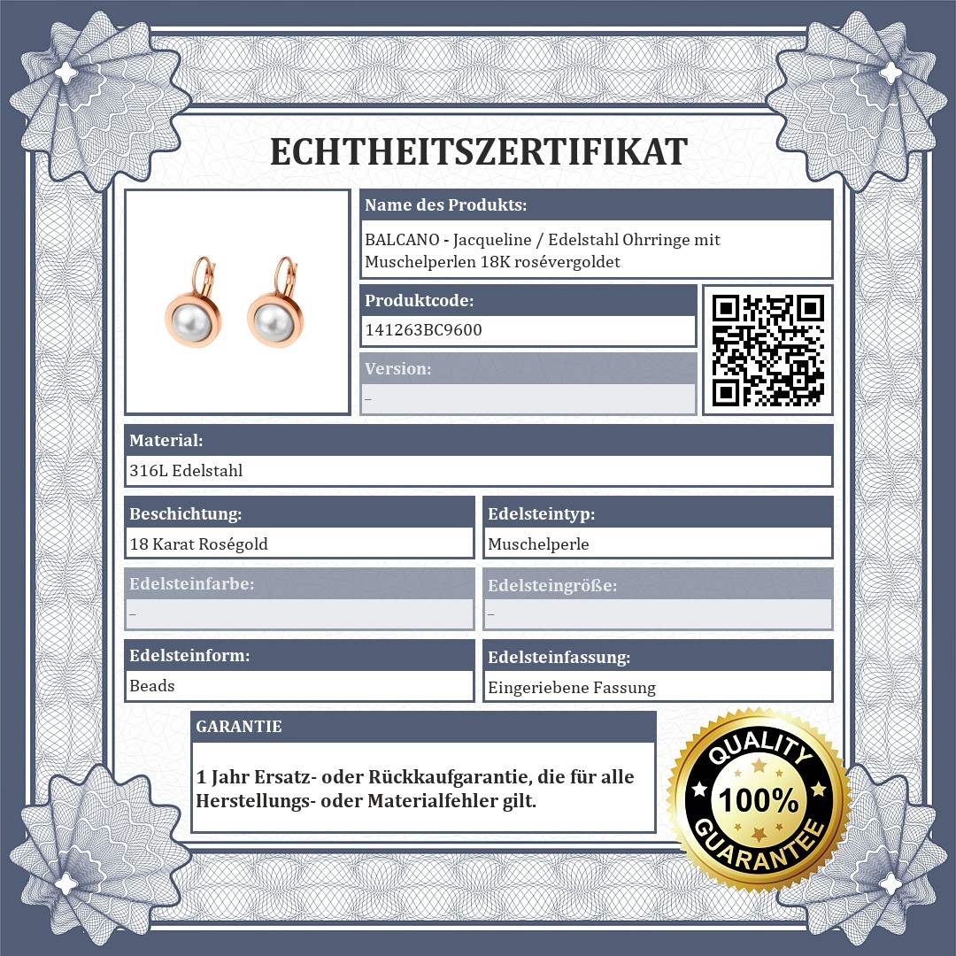 BALCANO - Jacqueline / Edelstahl Ohrringe mit Muschelperlen 18K rosévergoldet