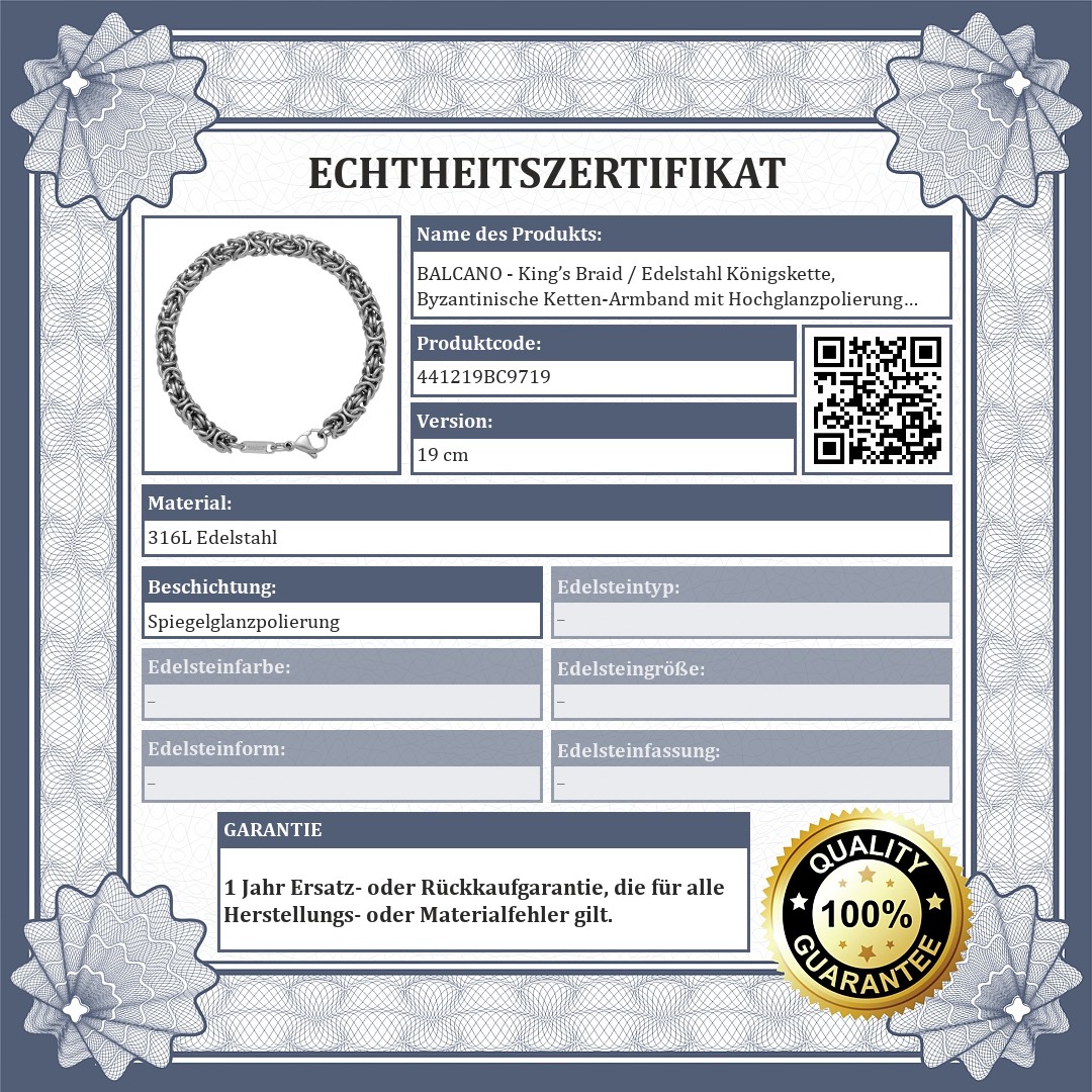 BALCANO - King’s Braid / Edelstahl Königskette, Byzantinische Ketten-Armband mit Hochglanzpolierung - 6 mm