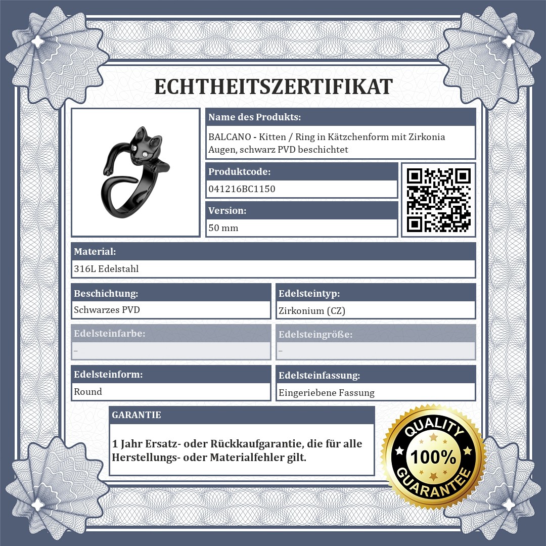 BALCANO - Kitten / Ring in Kätzchenform mit Zirkonia Augen, schwarz PVD beschichtet