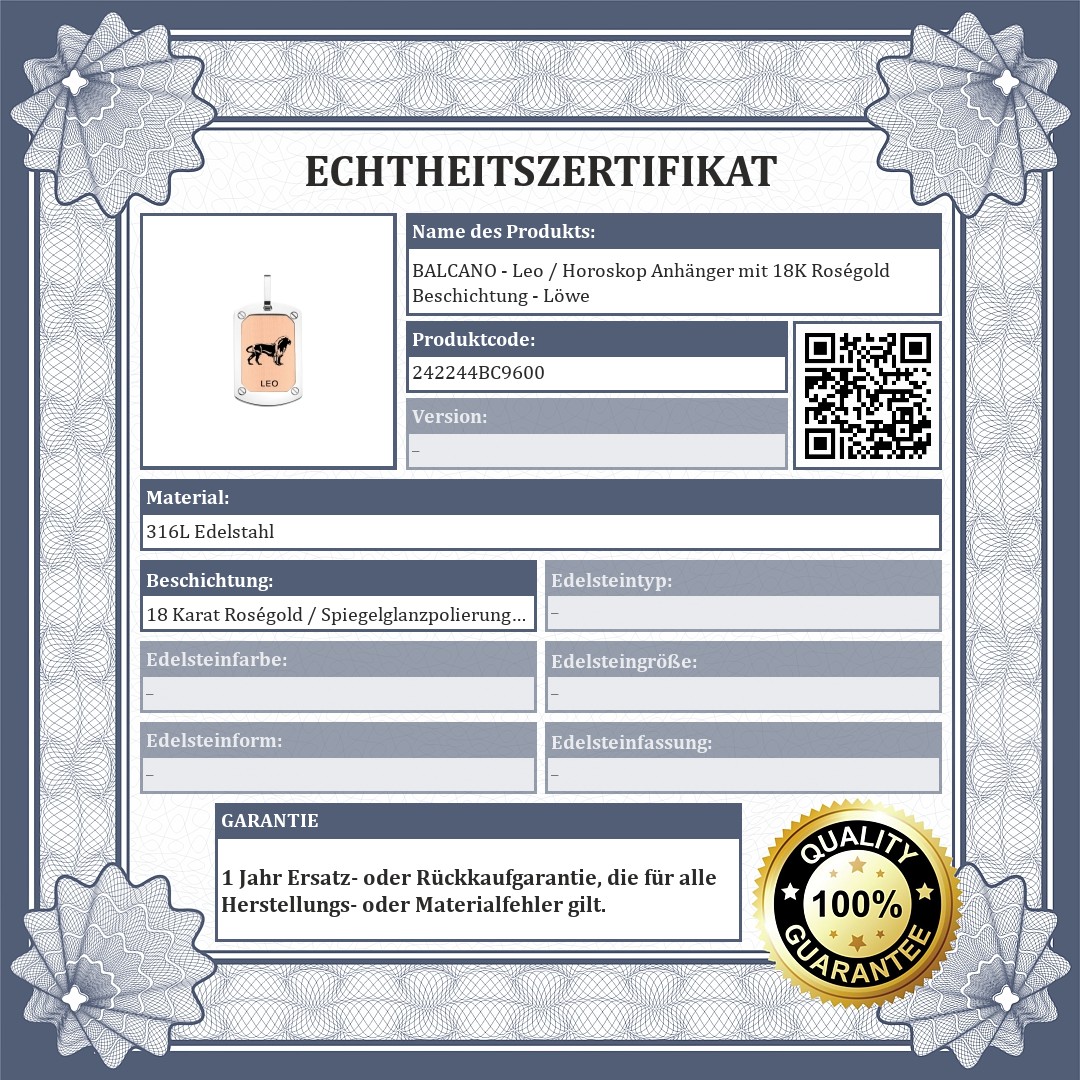 BALCANO - Leo / Horoskop Anhänger mit 18K Roségold Beschichtung - Löwe