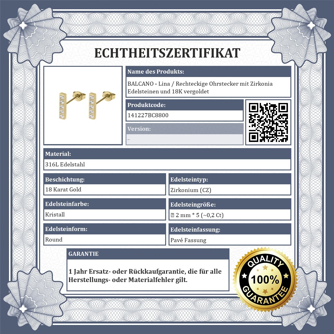 BALCANO - Lina / Rechteckige Ohrstecker mit Zirkonia Edelsteinen und 18K vergoldet