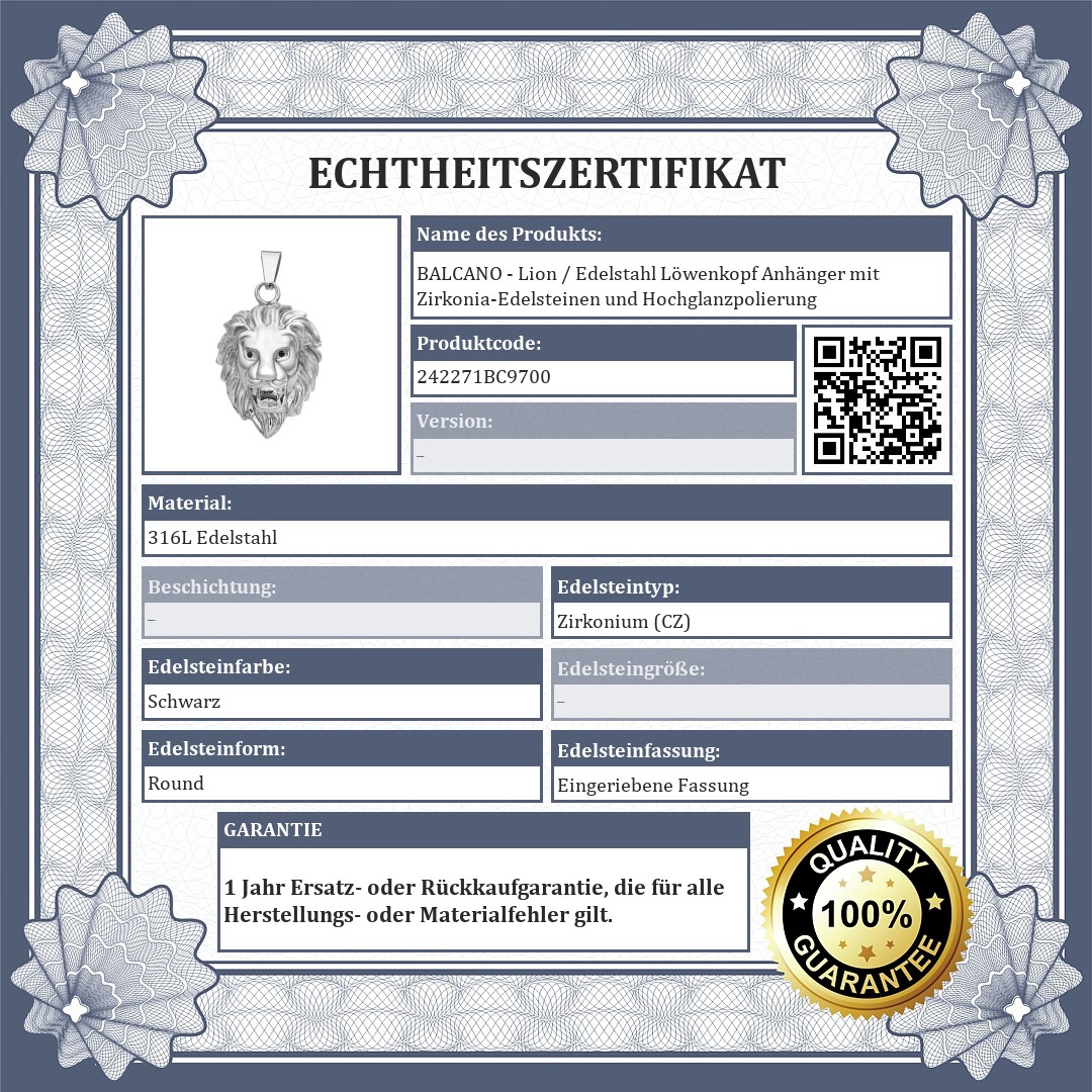 BALCANO - Lion / Edelstahl Löwenkopf Anhänger mit Zirkonia-Edelsteinen und Hochglanzpolierung
