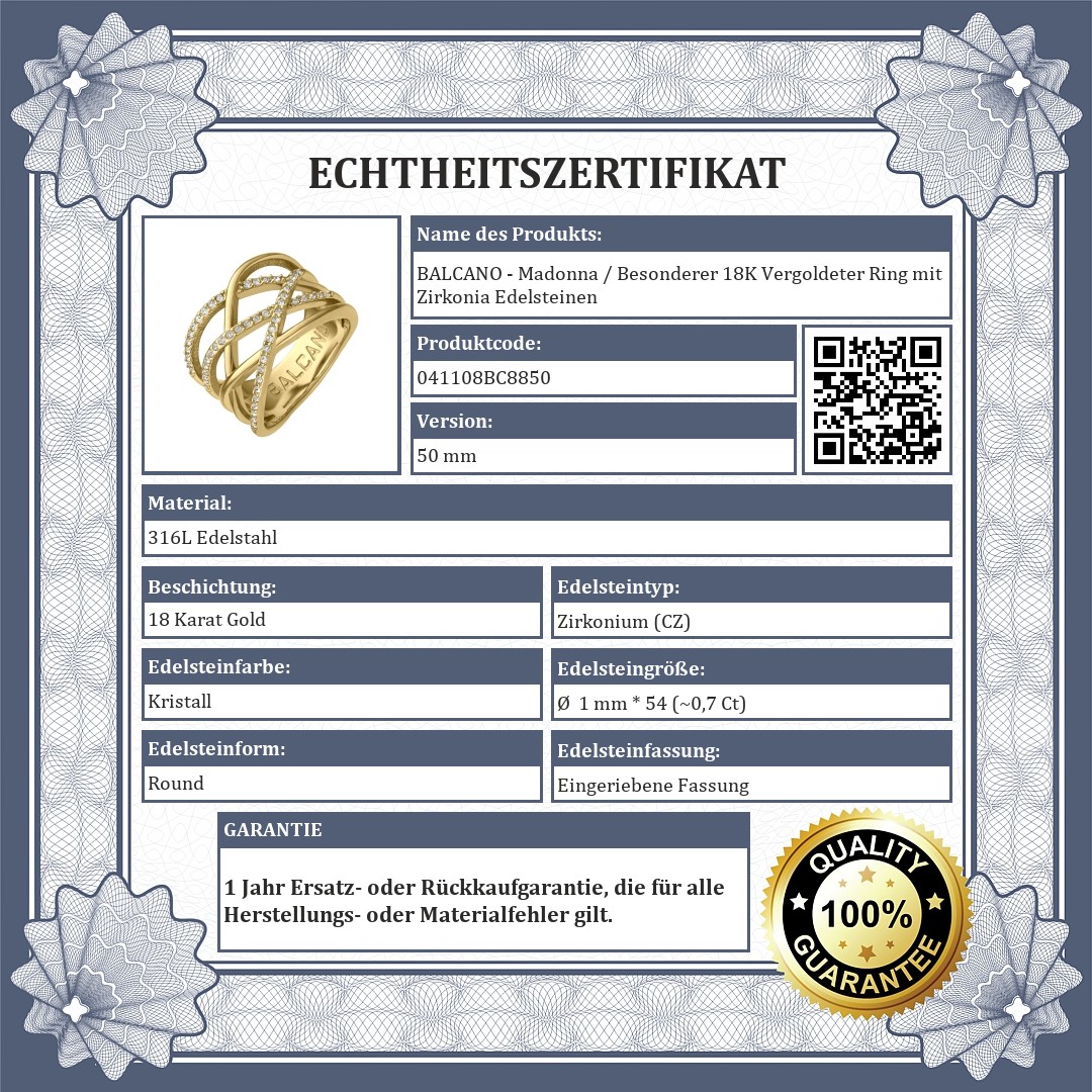 BALCANO - Madonna / Besonderer 18K Vergoldeter Ring mit Zirkonia Edelsteinen (041108BC88)