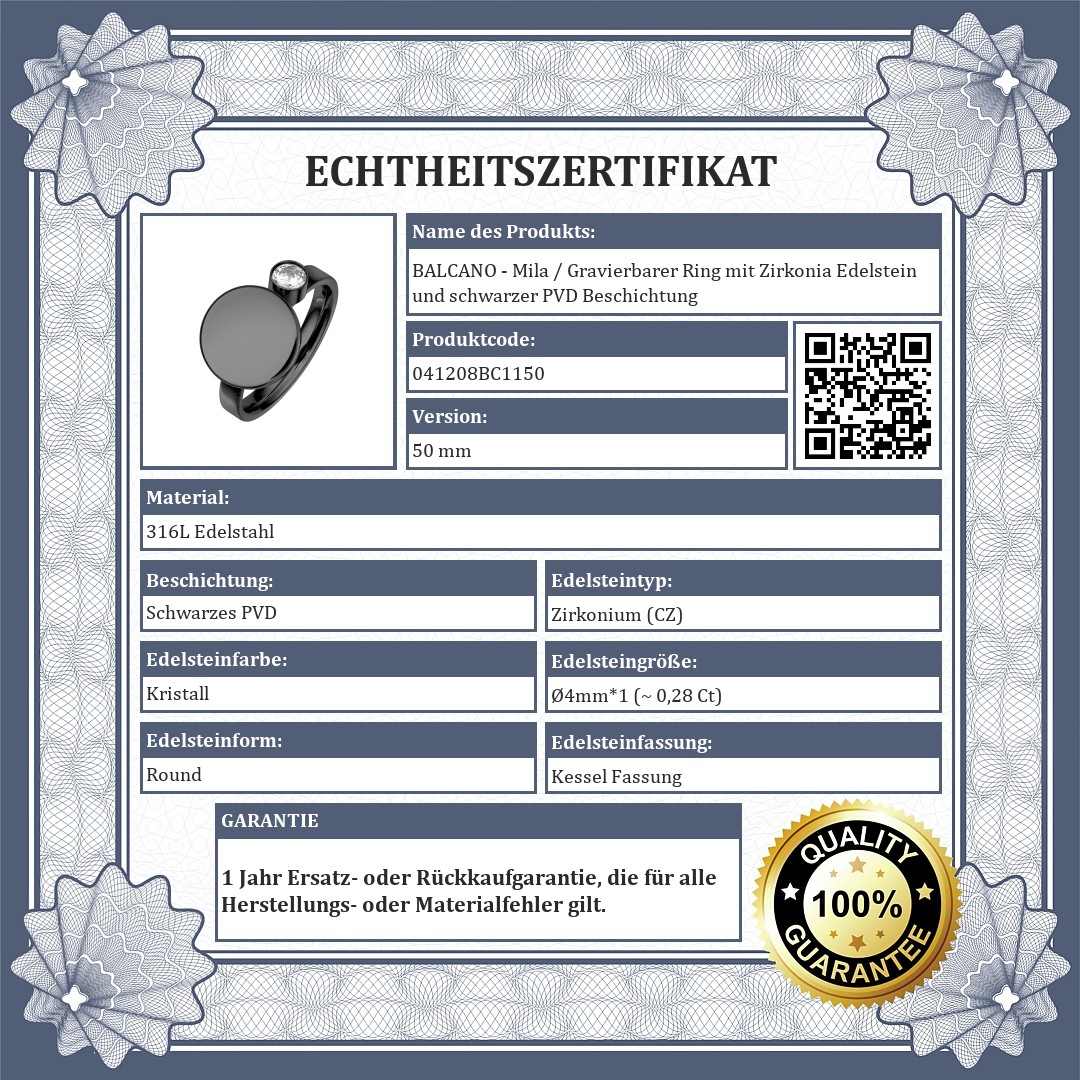 BALCANO - Mila / Gravierbarer Ring mit Zirkonia Edelstein und schwarzer PVD Beschichtung