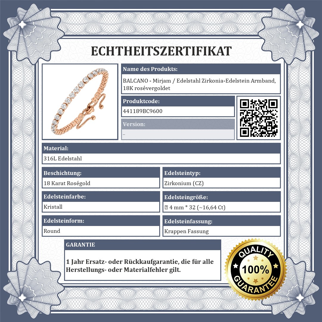BALCANO - Mirjam / Edelstahl Zirkonia-Edelstein Armband, 18K rosévergoldet