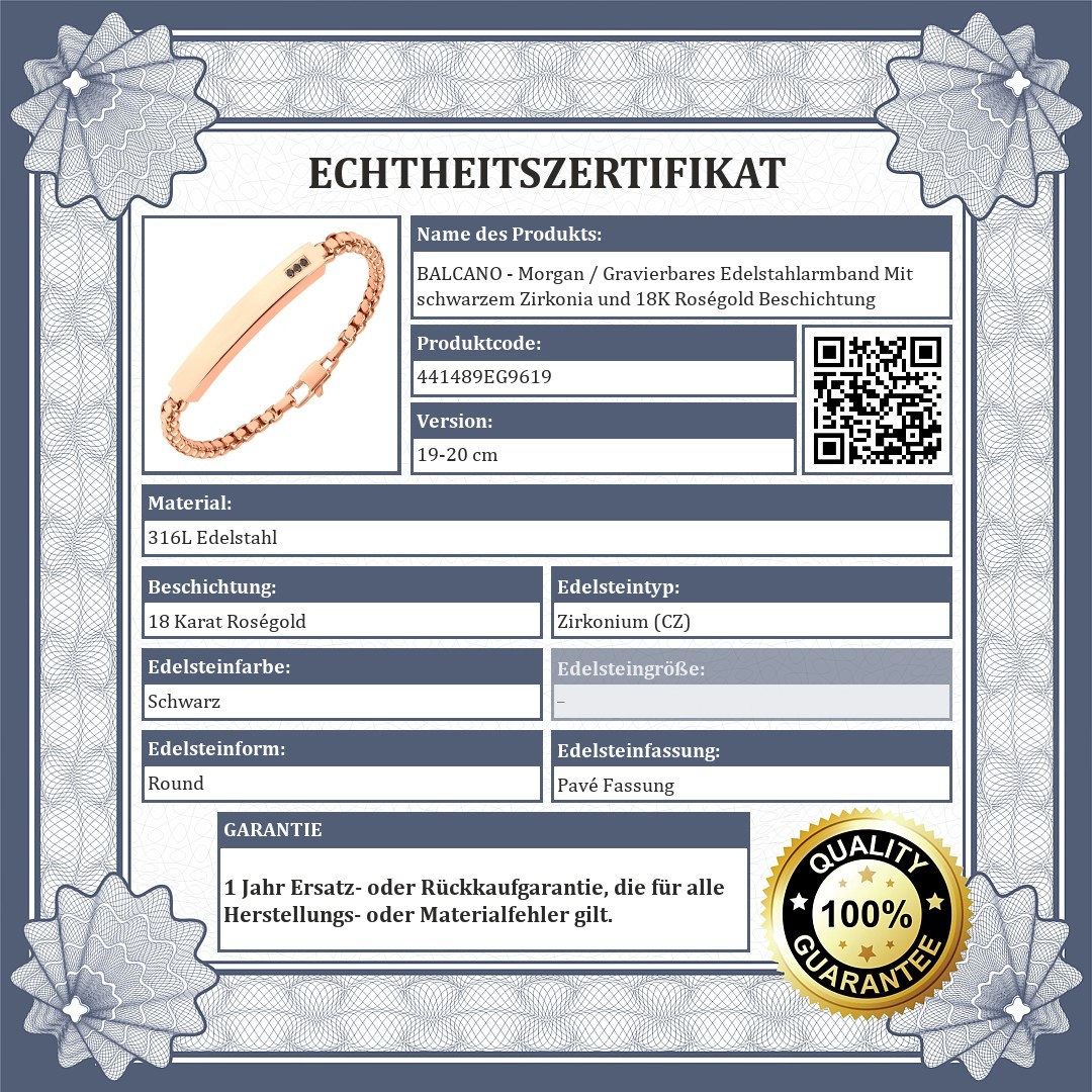 BALCANO - Morgan / Gravierbares Edelstahlarmband Mit schwarzem Zirkonia und 18K Roségold Beschichtung