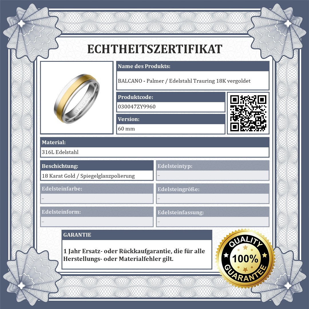 BALCANO - Palmer / Edelstahl Trauring mit Zirkonia Edelsteinen, 18K vergoldet